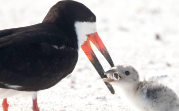 Fiókáját csikkel etető madarat fényképezett egy természetfotós egy floridai tengerparton. Környezetvédők arra figyelmeztetnek, hogy a madarak összetévesztik a táplálékot a szeméttel, aminek súlyos következményei lehetnek