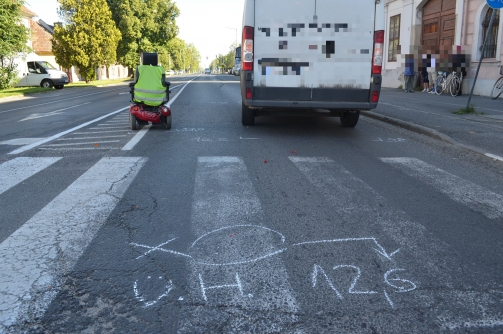Fiat kisbusszal közlekedett a 24 éves férfi Mosonmagyaróvár belterületén 2014. május 20-án 7 óra 45 perc körüli időben. A nólápi lakos egy útkereszteződéshez ért, a közlekedési lámpa zöld jelzést mutatott és az autós megkezdte kanyarodását, de nem biztosított elsőbbséget a gyalogátkelőhely szabad jelzésén kerekesszékkel átkelő asszonynak, elütötte a gyalogost. A baleset következtében az 56 éves nő a tolókocsiból az úttestre zuhant. A sérültet a mentőszolgálat munkatársai töréses sérüléssel vitték kórházba.